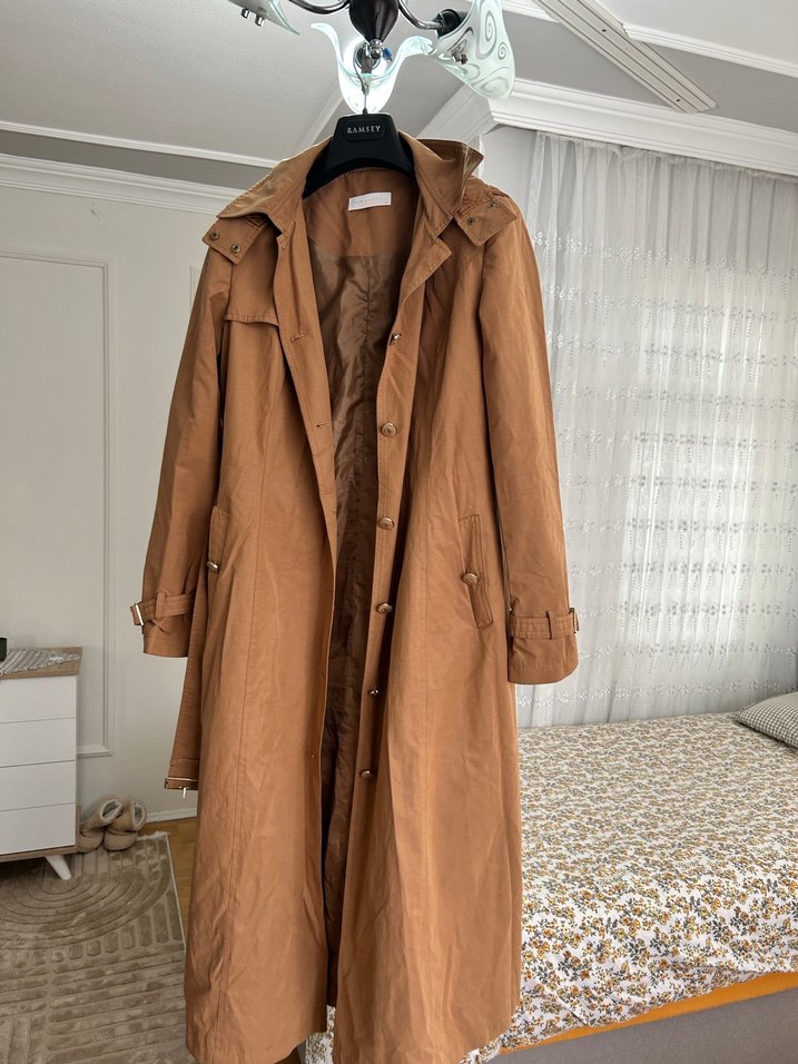 Bej renkli, keten kumaştan uzun ve düğmeli kadın trençkot. Salaş kesimli, uzun kollu ve notlu yaka detaylıdır. Günlük rahat sokak stiline uygundur. ✨