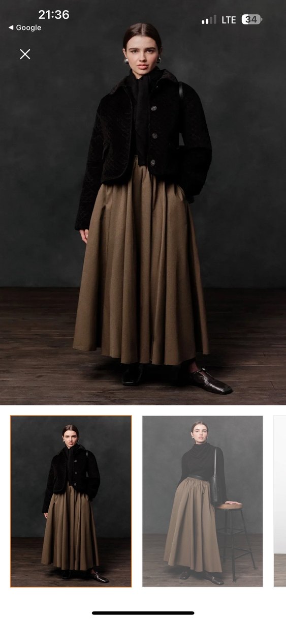 Bej renkte, keten kumaştan yapılmış, uzun ve salaş kesim, dökümlü tasarıma sahip etek, günlük kullanıma uygundur.
