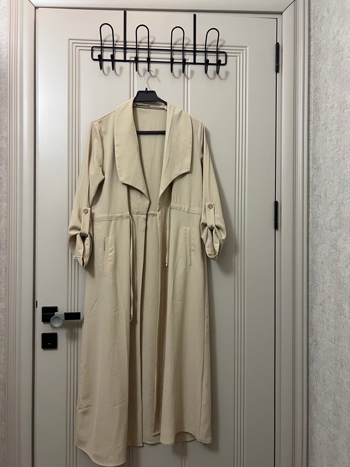 Bej Uzun Keten Salaş Trençkot