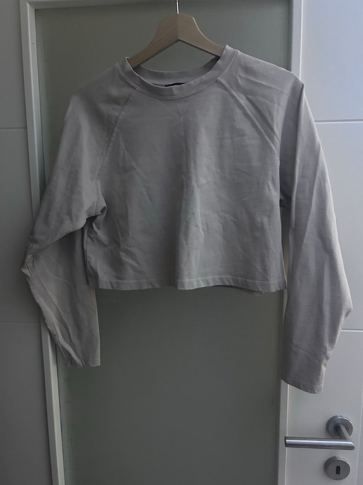 Bej renkli, uzun kollu ve yuvarlak yakalı sweatshirt. Yumuşak pamuklu kumaştan, bol kesim ve günlük kullanım için rahat bir modeldir. Sokak stiline uygun sade tasarım.