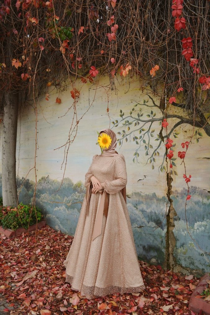 Bej renkte, yüksek yakalı ve uzun kollu, bohem tarzda, bol ve drapeli kesime sahip kadın elbisesi. Düğün için uygundur. Burcu ceren markadır. Herhangi bir defosu yoktur. Ayakkabısı ve şalı ile birlikte satılıktır.