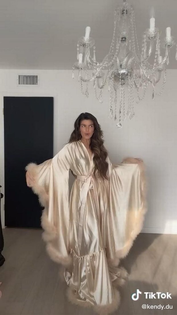 Bej Uzun Kollu Bohem Tüylü Kadın Sabahlık