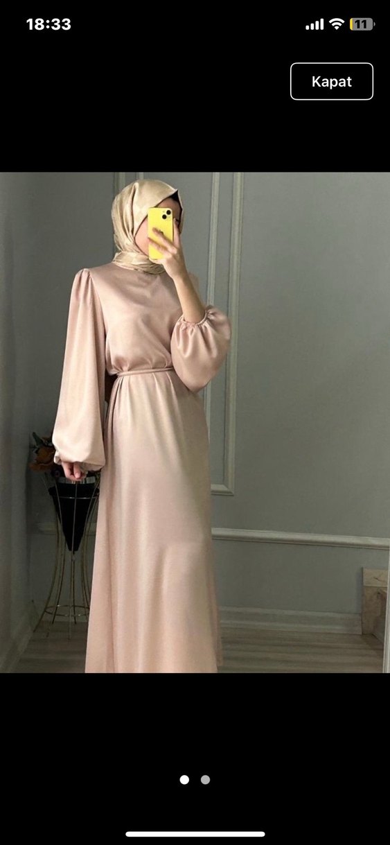 Bej renkte, uzun kollu ve yüksek yakalı, dökümlü tasarıma sahip, ince ve hafif kumaştan üretilmiş bol kesim elbise. Minimalist tarzda günlük kullanıma uygun. Zara model