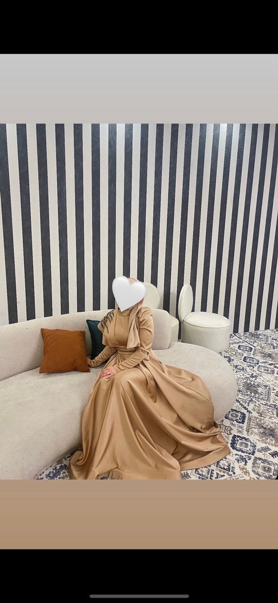 Bej Uzun Kollu Drapeli Kadın Abiye