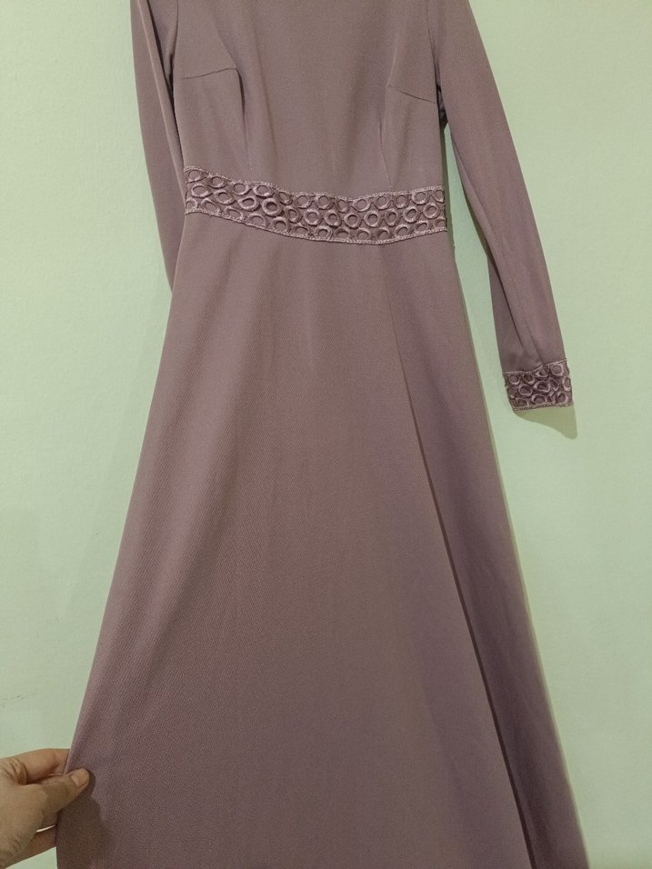 Bej Uzun Kollu Drapeli Kadın Abiye Elbise