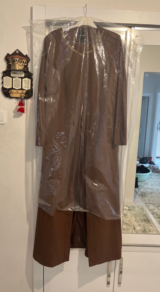 Bej renkte, uzun kollu ve drapeli detaylara sahip bol kesim kadın pardesü. Sentetik kumaştan üretilmiş, avant-garde sokak stili ve düğünler için uygun. Pazarlık sünnettir