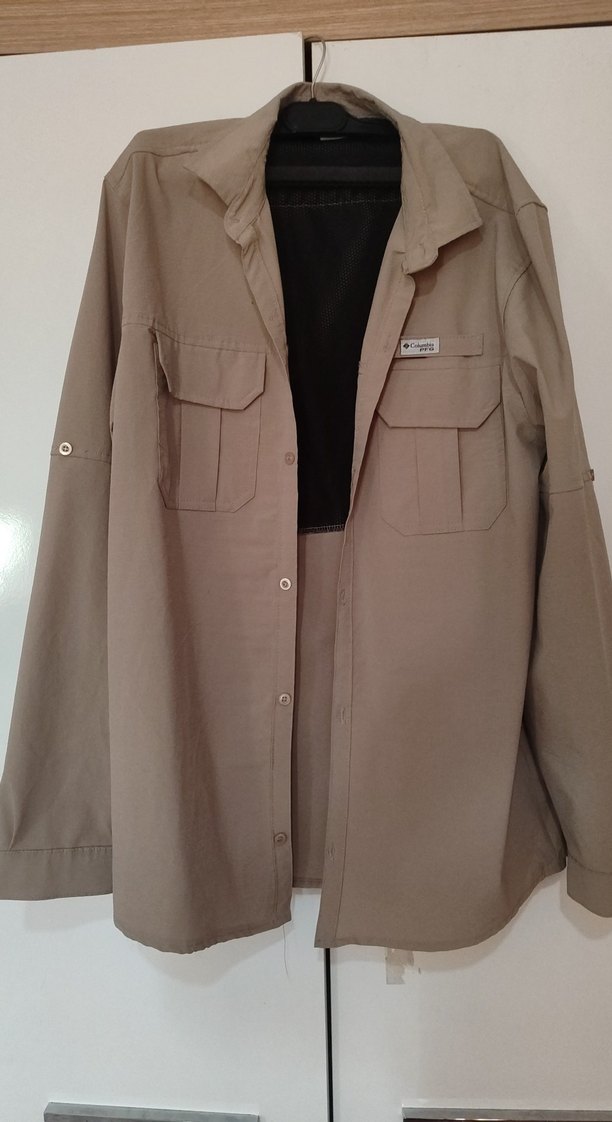 Bej renkte, notched lapel yaka ve düğmeli ön kapamalı erkek gömlek. Uzun kollu, regular fit ve minimalist sokak stili. Günlük kullanım için sentetik kumaştan üretilmiştir.