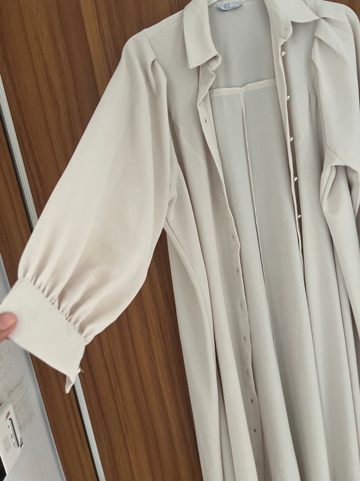 Bej Uzun Kollu Düğmeli Hamile Bluzu