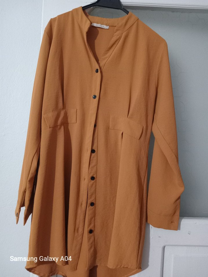 Bej Uzun Kollu Düğmeli Kadın Tunik 44 benden
