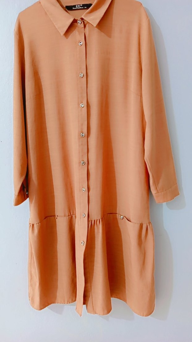 Bej Uzun Kollu Düğmeli Kadın Tunik