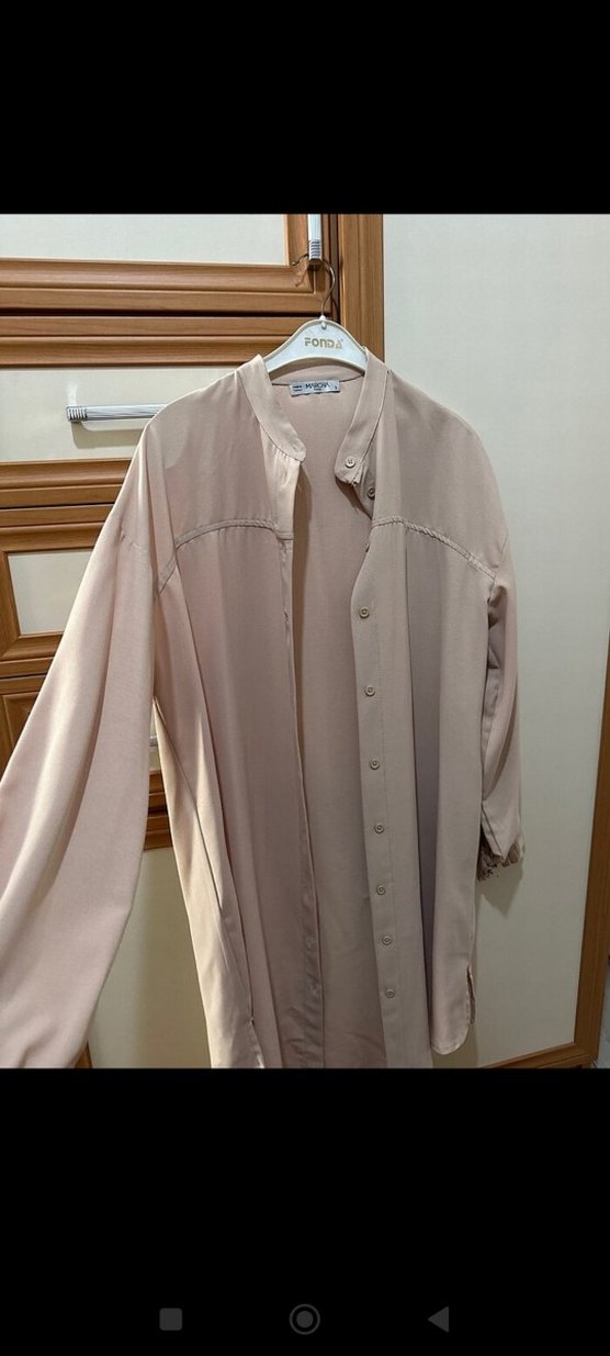 Bej Uzun Kollu Düğmeli Salaş Gömlek