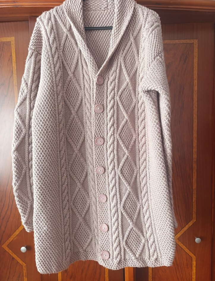 Günlük kullanıma uygun, bohem tarzda kışlık el emeği hırka. Hiç kullanılmadı. L-XL vücut ölçülerine uygun örüldü, esnek yapısı ile daha geniş ölçülere uymakla birlikte daha zayıf kişilere de oversize şıklık sunabilir.