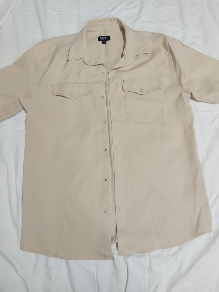 Bej renkli, düğmeli, regular fit erkek gömleği. İki cep ve yakalı tasarımıyla gündelik sokak stiline uygun. Yumuşak bir kumaş