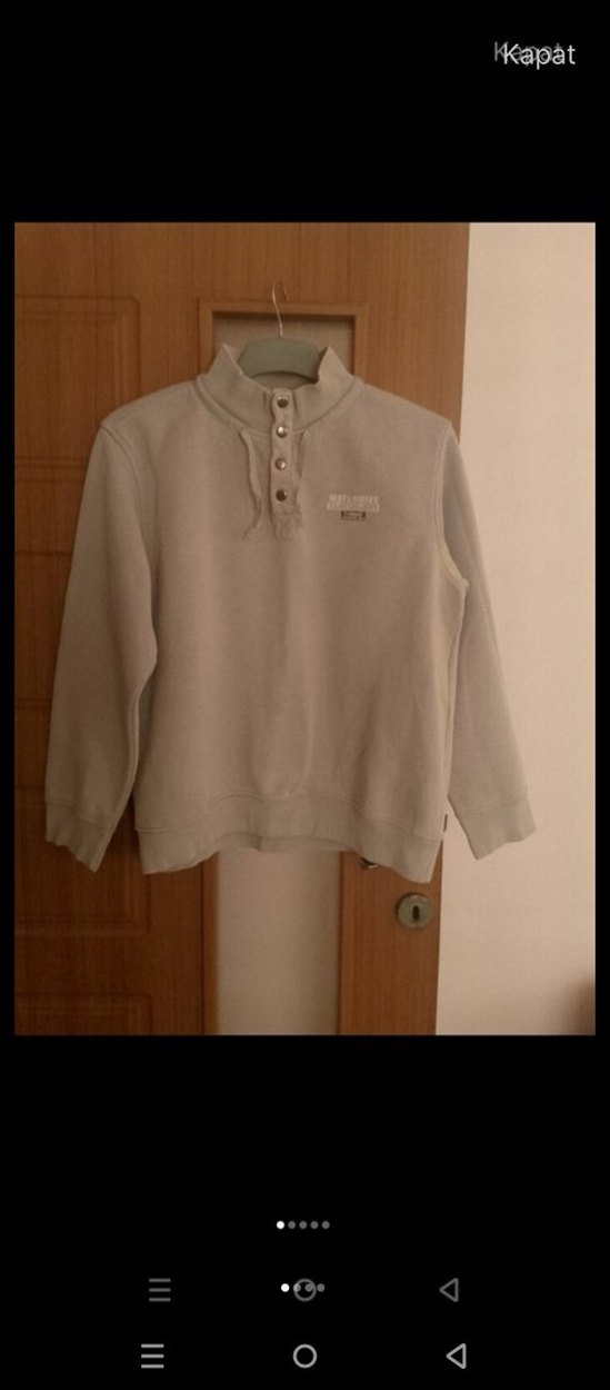 Uzun kollu, düğmeli yuvarlak yaka ve bol kesim erkek sweatshirt. Bej renkte, yumuşak ve sıcak kumaştan üretilmiştir, desensiz sade bir tarza sahiptir.