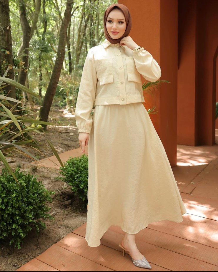 Bej Uzun Kollu etek takım