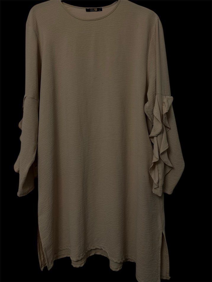Bej Uzun Kollu Fırfırlı Kadın Tunik