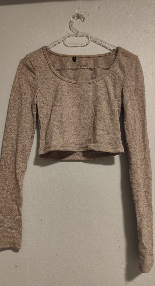 Bej renkli, uzun kollu ve yuvarlak yakalı kadın trikosudur. Yumuşak keten kumaştan yapılmış, kısa ve vücuda oturan kesimdedir.