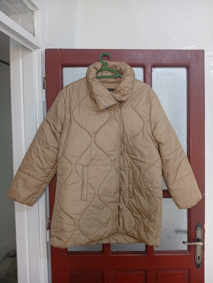 Bej renkli, uzun kollu kadın kışlık mont, düğmeli ve bol kesimdir. Uzun boyu ve yumuşak keten kumaşı ile rahat ve sıcak tutar. Sokak tarzına uygun sade tasarımlıdır. ❄️