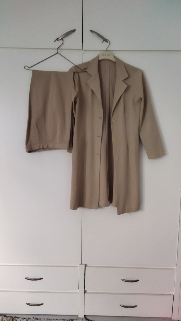 Bej Uzun Kollu Kadın kumaş takımı