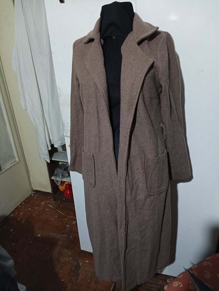 Bej renkte, uzun kollu ve yakalı kadın kabanı. Yumuşak ve sıcak kumaştan, rahat kesimli, desen içermeyen günlük kullanıma uygun şık parça.GUUZIA İKİ KOLTUK ALTI MESAFE45 CM CM