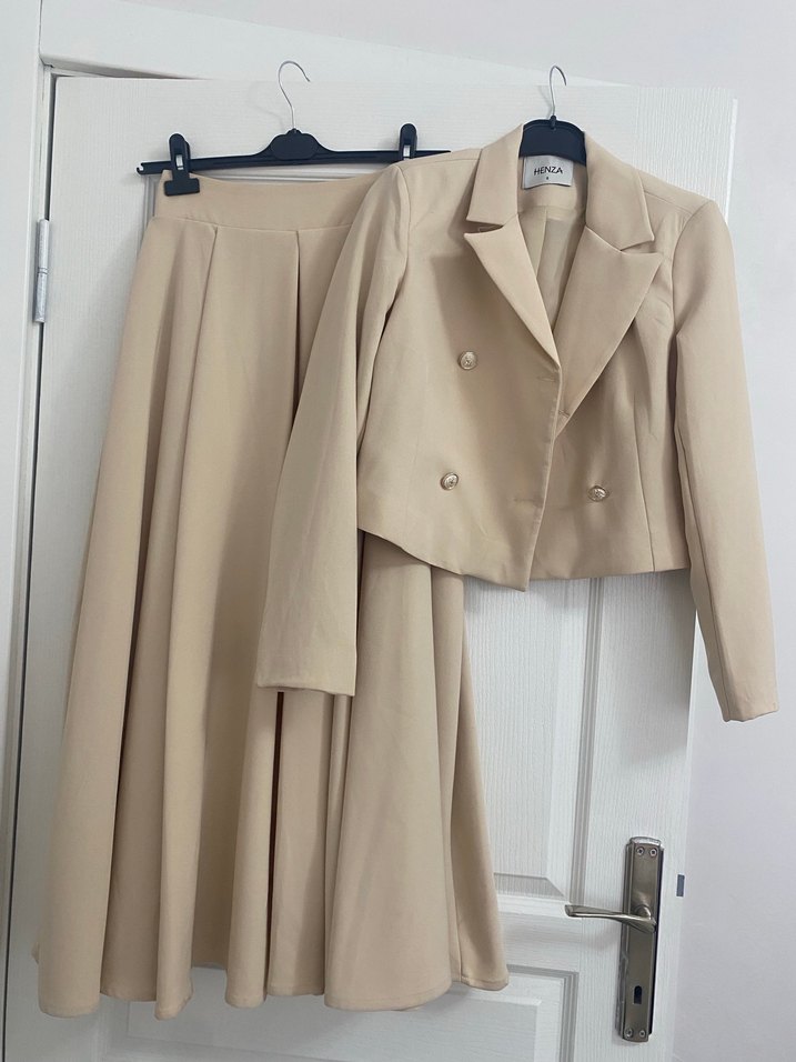 Bej Uzun Kollu Kadın Takım Elbise