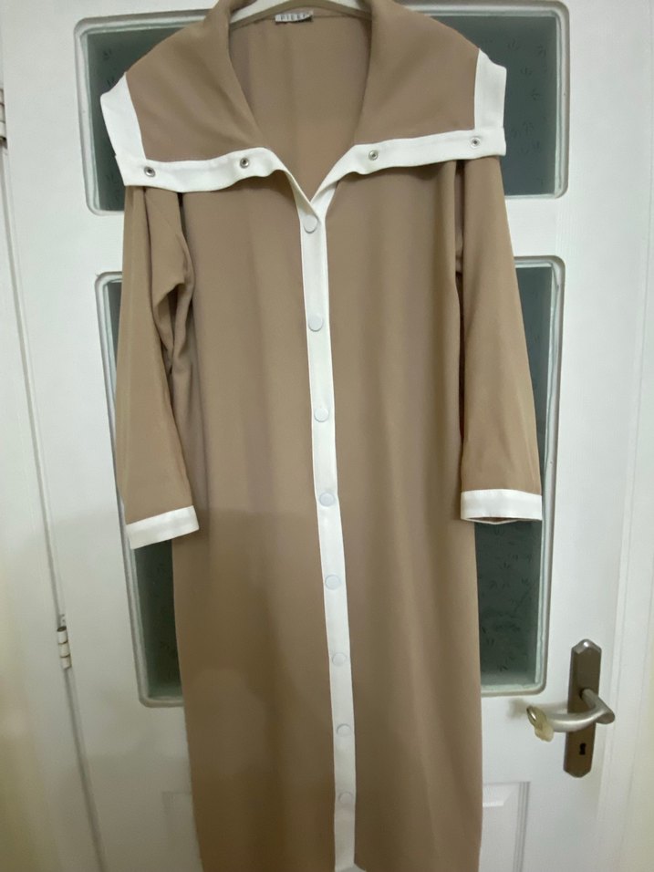 Bej renkte, uzun kollu ve regular fit kadın uzun kap.Minimalist tarzda, yakada, düğmelerde ve kol uçlarında beyaz detaylar bulunur. Ürünüm Pieef markadır Tarz bir duruşu var. Yakasını istediğiniz gibi şekillendirme olanağınız var.