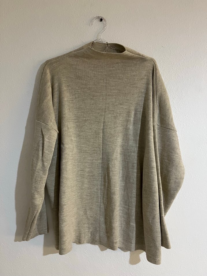 Yumuşak keten kumaştan, boğazlı ve bol kesim bej uzun kollu kazak ikili takım Sade, rahat tasarımı günlük kullanım için uygundur.