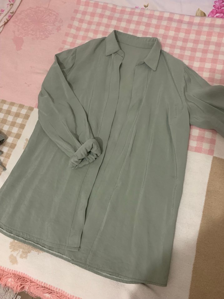 Bej renkte, keten kumaştan, uzun kollu ve düğmeli, notched lapel yakalı, bol kesim uzun kadın gömleği. Günlük kullanım için uygundur. Ürün kurs ödevi olarak dikilmiştir. Hiç giyilmedi defosu vs yoktur.