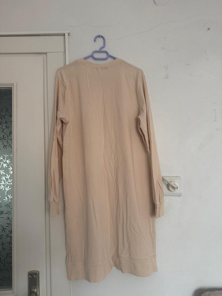 Bej Uzun Kollu Keten Kadın Tunik