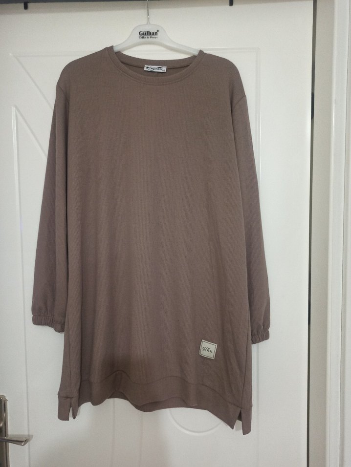 Keten kumaştan, uzun kollu, yuvarlak yakalı, bej renk bol kesim midi tunik. Rahat ve sade tasarımıyla günlük şıklık sunar. hiç kullanılmadı sıfır ürün tertemiz aynı gün kargoya verilir