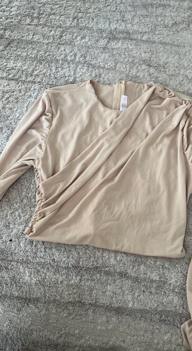 Bej renkli, uzun kollu keten bluz. Salaş kesimi ve yuvarlak yakasıyla rahat bir görünüm sunar, drapeli detaylarla tamamlanmıştır. Günlük kullanım için uygundur.