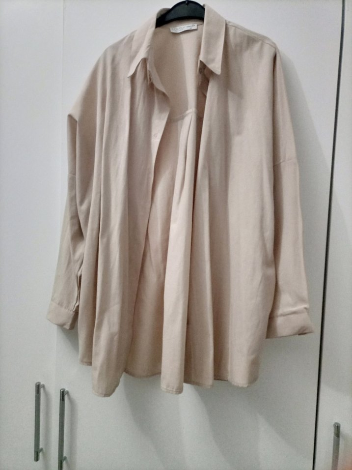 Bej Uzun Kollu Keten Salaş Gömlek hiç giyilmedi