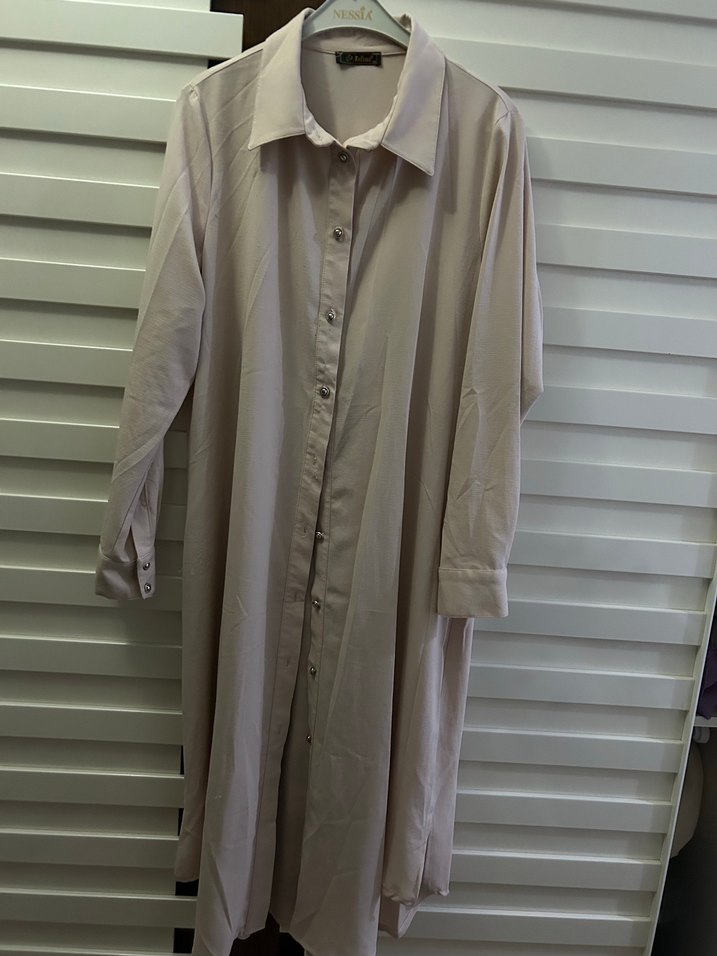 Bej renkte, düğmeli ve yakalı uzun kollu keten tunik. Rahat bol kesimiyle günlük kullanımı için uygundur. İsteğe bağlı kap olarakta kullanabilir deformesini belirtim fakat kullanıma engel değildir