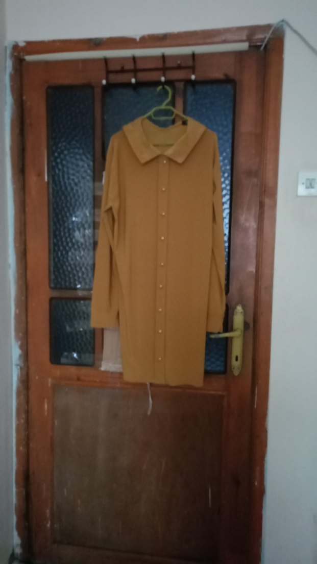 Bej midi uzun kollu tunik, yakalı ve düğmeli ön detaylıdır. Rahat kalıplı ve sentetik kumaştan üretilmiştir, günlük kullanıma uygundur.