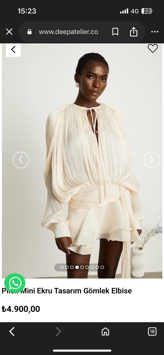 Bej renkli, uzun kollu, mini boy bohem elbise. İnce, ipeksi kumaştan yapılmış, bol ve drapeli kesimlidir.