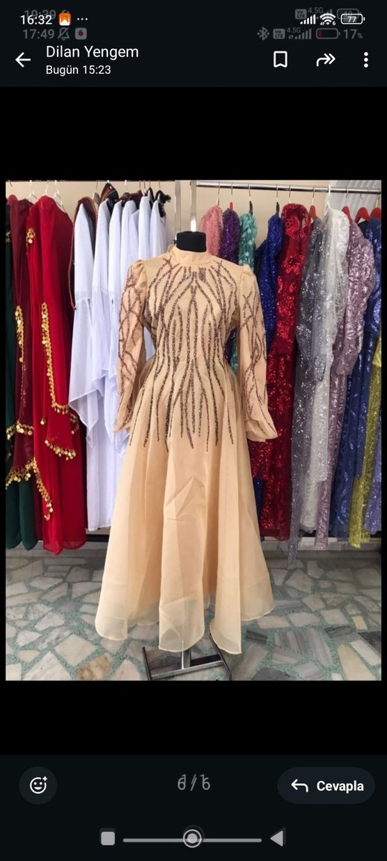 Bej Uzun Kollu Nakışlı Kadın tesettür abiye
