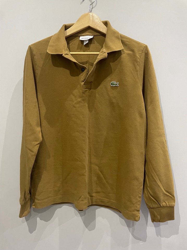 Orjinal değildir. Bej renkli, düğmeli, yakalı ve uzun kollu polo tişört. Keten kumaştan, bol kesim ve parlak görünüme sahip, rahat sokak giyimi için uygun.