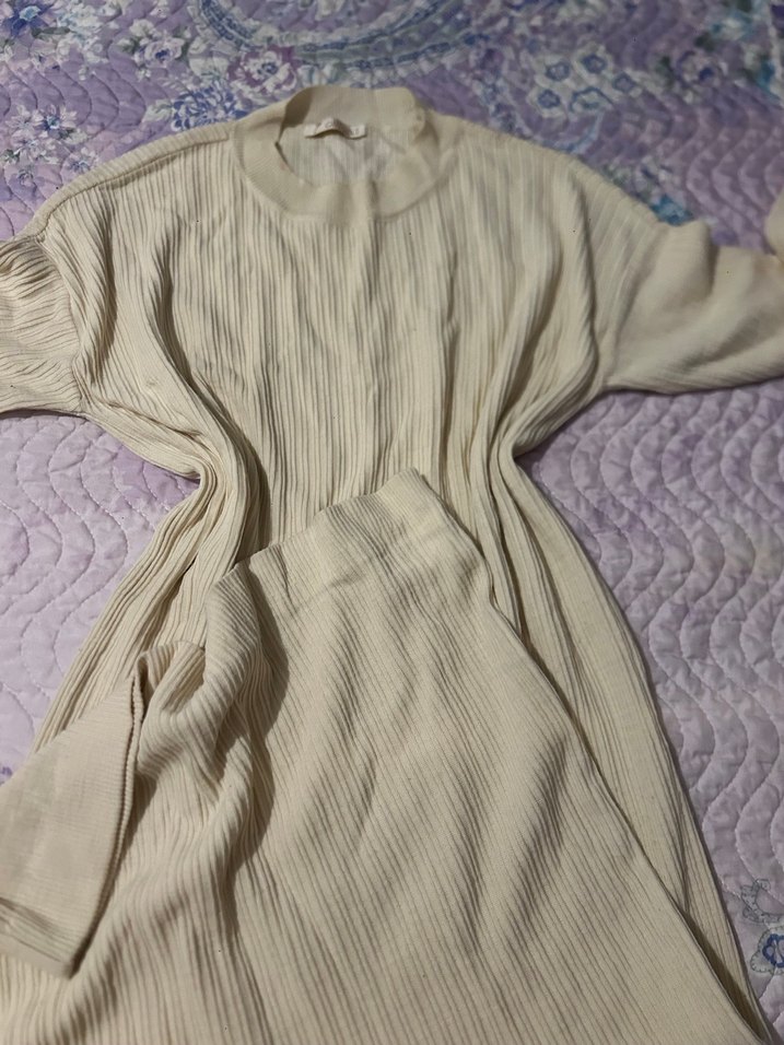 Bej renkte, uzun kollu ve salaş kesime sahip kadın elbise . Kabartmalı kumaşı ile rahat ve sade bir görünüm sunar. ️