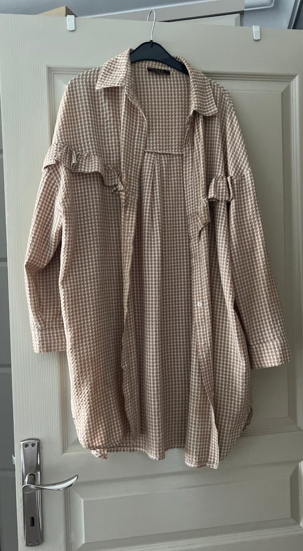 Bej Uzun Kollu Salaş Kadın Gömlek