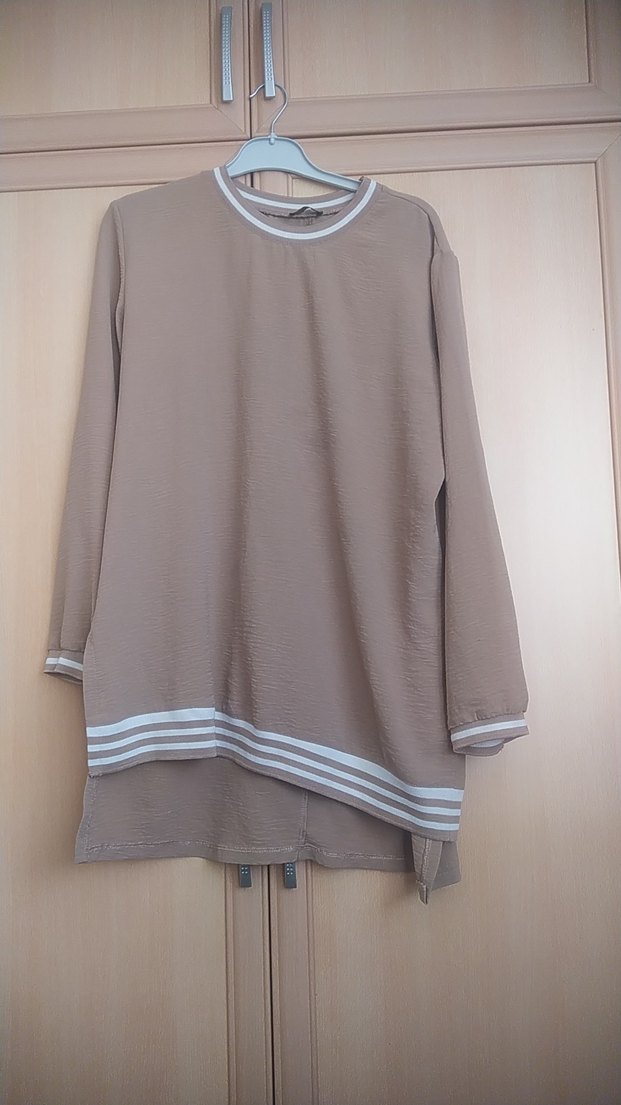 Bej Uzun Kollu Salaş Kadın Tunik - Görsel 1