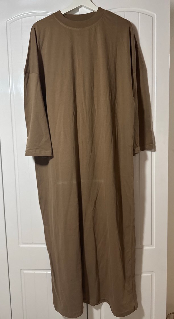Bej Uzun Kollu Salaş Keten Elbise