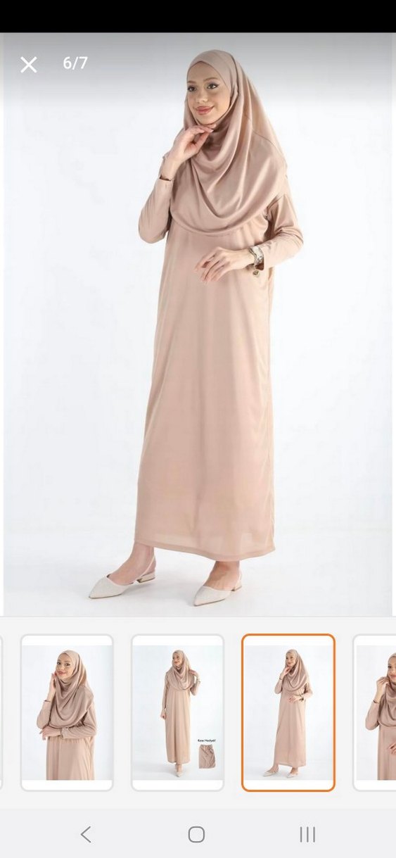 Bej Uzun Kollu Salaş Tesettür Elbise