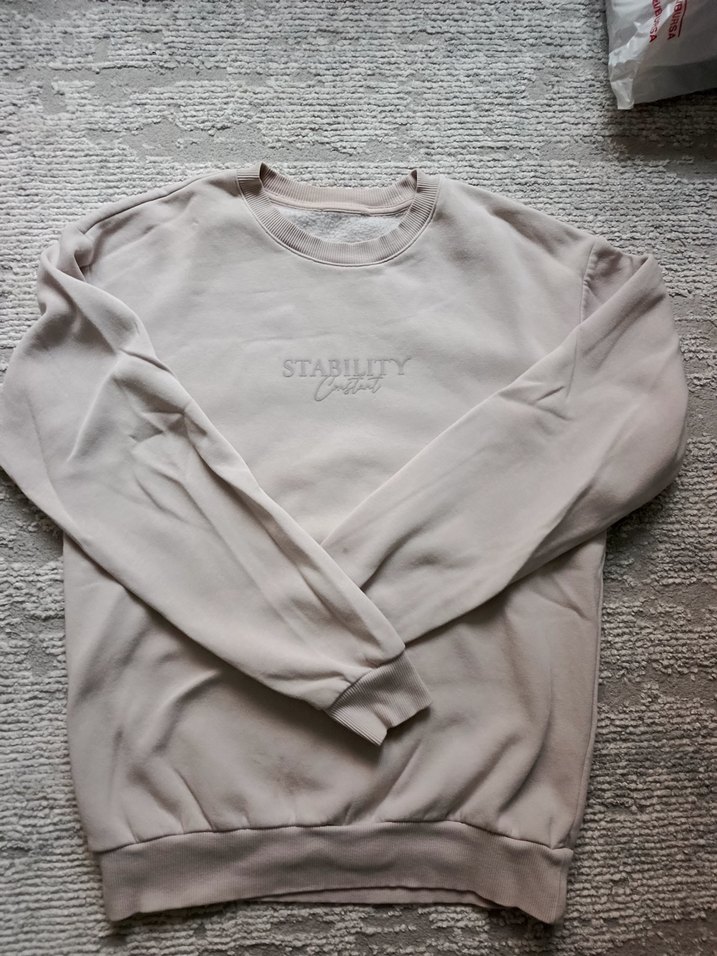 Yumuşak keten kumaştan yapılmış bej uzun kollu yuvarlak yaka sweatshirt. Salaş kesimi ve desensiz tasarımıyla gündelik ve şık bir tarz sunar. Unisex üründür hiç bir sıkıntısı yoktur bedeni s ve m arasıdır