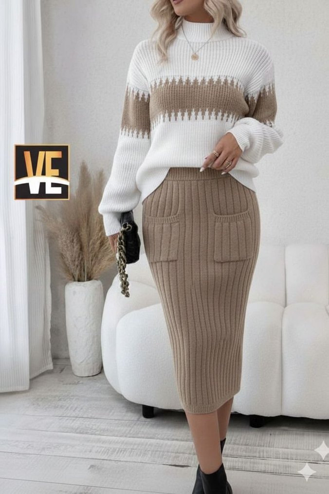 Bej Uzun Kollu Triko Elbise
