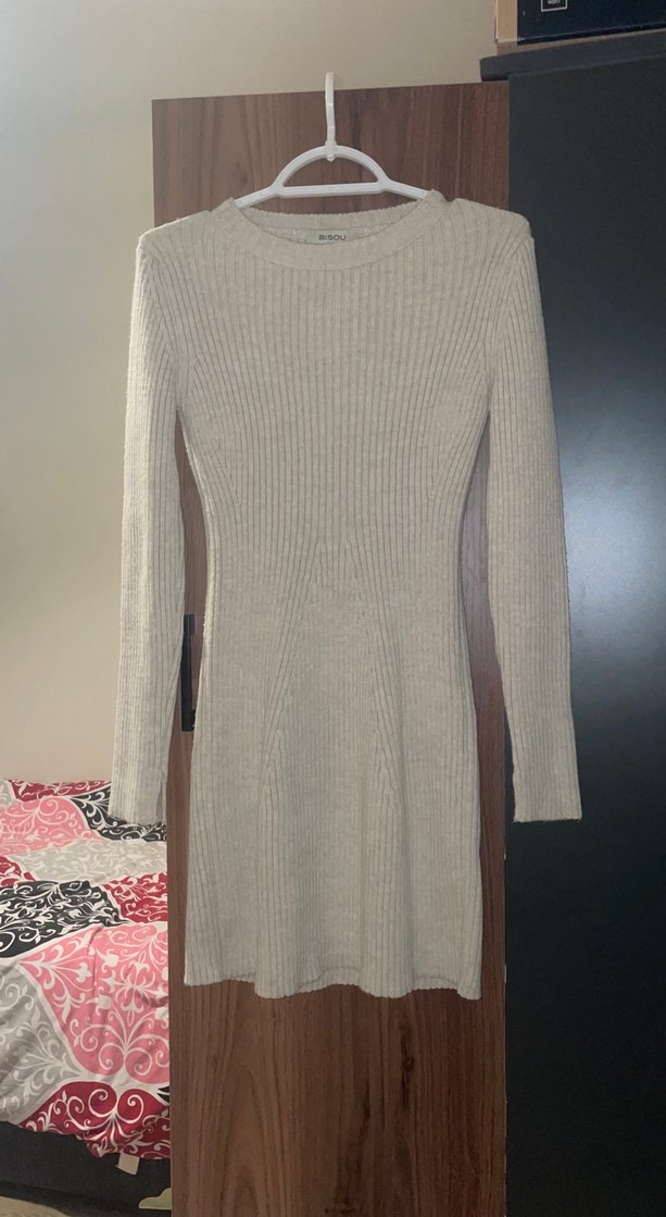 Bej renkli, uzun kollu ve bisiklet yaka, vücuda oturan triko elbise, rahat ve sıcak dokusuyla günlük kullanıma uygundur. ✨ Beden: Standart