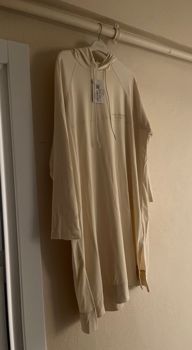 Bej renkte, uzun kollu ve bol kesim uzun sweatshirt. Yumuşak keten kumaştan üretilmiş, günlük sokak stili için uygun, zahmetsiz şıklık sunar.