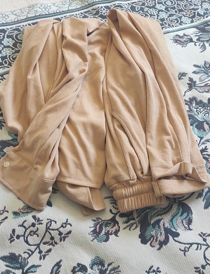 Bej renkli, uzun kollu, erkek pijama takım alt üst