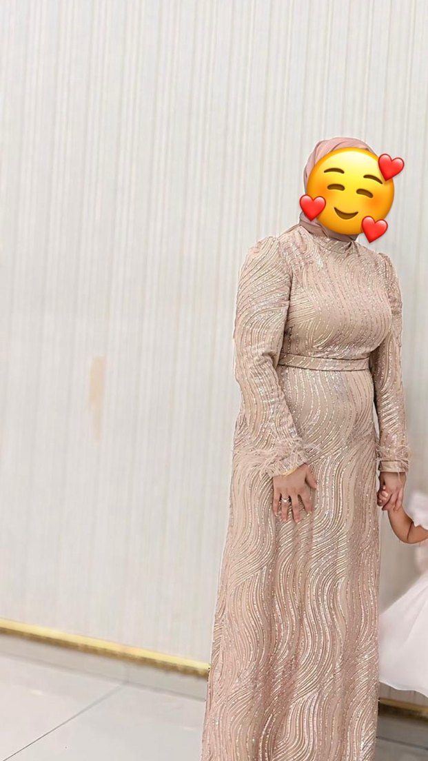 Bej renkte, uzun kollu ve yüksek yakalı, yılan desenli, drapeli ve vücuda oturan abiye elbise. Gösterişli ve sade tarzlar için uygundur. Pazarlık payı vardır