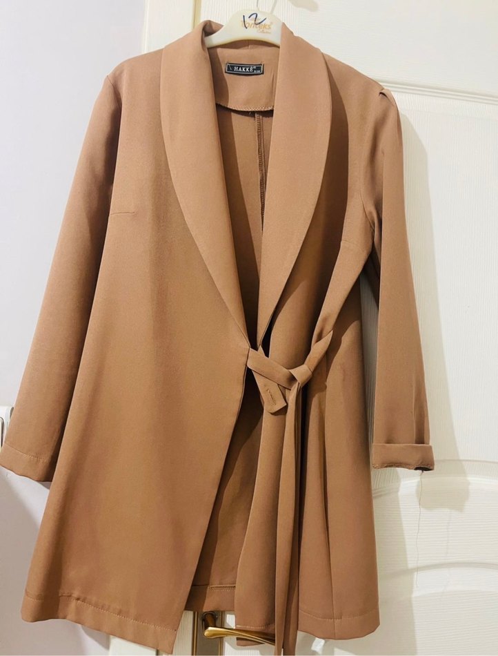 Bej Uzun Kuşaklı Kadın Klasik Ceket