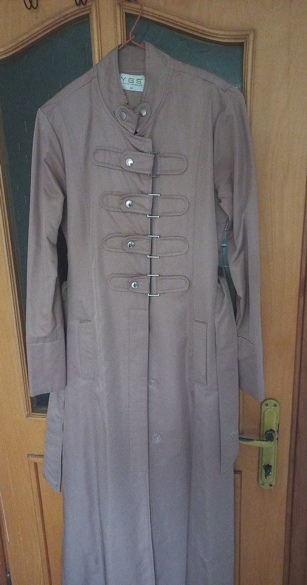 Bej renkli, uzun kesim kadın pardesü. Satenimsi kumaştan üretilmiş, günlük kullanıma uygundur. Hiç hasar yoktur